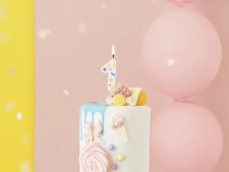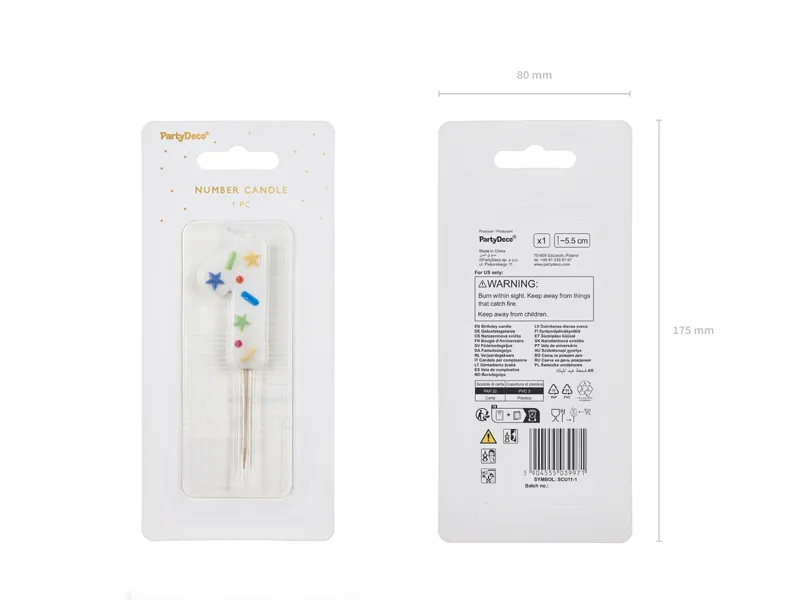 Birthday Candle Number 1, white confetti, 5.5cm